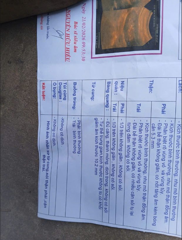 Đó là bệnh nhân Thiều Thị Kiều, địa chỉ: chung cư Bình Phú, đường Nguyễn Chích, phường Bắc Nha Trang, SĐT: 0916456779; Phát hiện sỏi thận kích thước 5.6mm, thường xuyên đau lưng âm ỉ. Sau gần 3 tuần sử dụng thực phẩm đặc trị, anh đi tiểu ra sỏi nhỏ, các cơn đau chấm dứt, sinh hoạt trở lại bình thường.